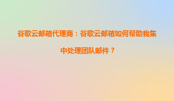 2025-10-13谷歌云郵箱代理商:谷歌云郵箱如何幫助我集中處理團隊郵件? 引言 在當今快節(jié)奏的商業(yè)環(huán)境中,高效的團隊協(xié)作和溝通是成功的關鍵。郵件作為企業(yè)溝通的重要工具...