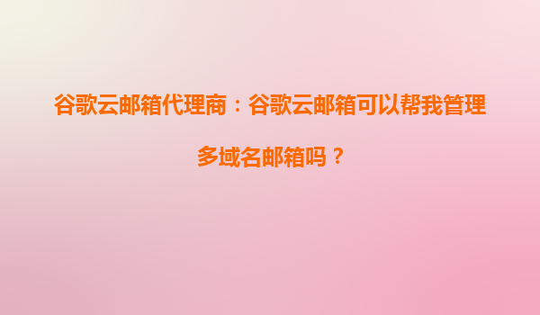 2025-10-13谷歌云郵箱代理商:谷歌云郵箱可以幫我管理多域名郵箱嗎? 引言 在當(dāng)今數(shù)字化時代,企業(yè)通常需要管理多個域名下的郵箱,以滿足業(yè)務(wù)擴(kuò)展或品牌多樣化的需求。如果您正在尋找一款能夠高效管理多...
