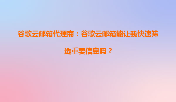 2025-10-12谷歌云郵箱代理商:谷歌云郵箱能讓我快速篩選重要信息嗎? 引言:信息爆炸時代的挑戰(zhàn) 在當(dāng)今數(shù)字化時代,電子郵件已成為企業(yè)和個人溝通的核心工具。然而,隨著...