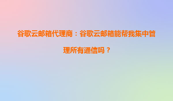 2025-10-11谷歌云郵箱代理商:谷歌云郵箱能幫我集中管理所有通信嗎? 一、谷歌云郵箱的核心優(yōu)勢 谷歌云郵箱(GoogleWorkspace郵箱)作為企業(yè)級電子郵件服務(wù),依托谷歌強(qiáng)大的云計算基礎(chǔ)設(shè)施,為用戶提供高效...