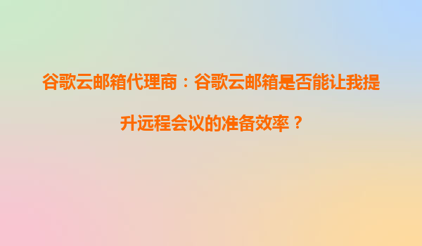 2025-10-06谷歌云郵箱代理商:谷歌云郵箱是否能讓我提升遠(yuǎn)程會(huì)議的準(zhǔn)備效率? 在當(dāng)今數(shù)字化辦公環(huán)境中,遠(yuǎn)程會(huì)議已成為企業(yè)日常運(yùn)營(yíng)的重要組成部分。如何高效地準(zhǔn)備和管理遠(yuǎn)程會(huì)議,成為許多企業(yè)和個(gè)人關(guān)注的焦點(diǎn)。谷歌云郵...