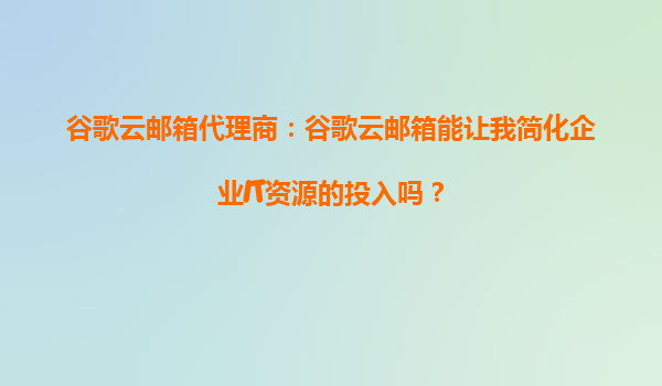 2025-10-06谷歌云郵箱代理商:谷歌云郵箱能讓我簡(jiǎn)化企業(yè)IT資源的投入嗎? 引言 在數(shù)字化轉(zhuǎn)型的浪潮中,企業(yè)IT資源的優(yōu)化和管理成為關(guān)鍵挑戰(zhàn)之一。谷歌云郵箱(GoogleWorkspace)作為全球領(lǐng)先的企業(yè)級(jí)郵件和協(xié)作解決...