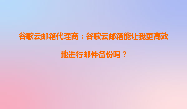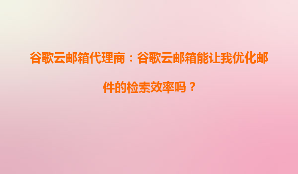 2025-10-05谷歌云郵箱代理商:谷歌云郵箱能讓我優(yōu)化郵件的檢索效率嗎? 在當(dāng)今快節(jié)奏的商業(yè)環(huán)境中,高效的郵件管理已成為企業(yè)和個人提升生產(chǎn)力的關(guān)鍵因素之一。作為全球領(lǐng)先的云計算服務(wù)提供商,谷歌云郵箱(GmailforBu...
