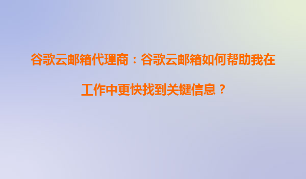 2025-10-04谷歌云郵箱代理商:如何通過谷歌云郵箱優(yōu)化客戶郵件處理效率 一、谷歌云郵箱的核心優(yōu)勢 谷歌云郵箱(GoogleWorkspace)作為企業(yè)級郵件解決方案,憑借其強大的云端架構(gòu)和智能化功能,成為提升客戶郵件處理效率...