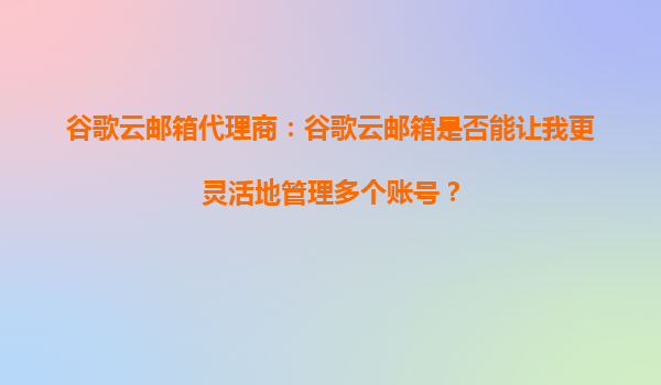 2025-10-04谷歌云郵箱代理商:谷歌云郵箱是否能讓我更靈活地管理多個賬號? 一、谷歌云郵箱的核心優(yōu)勢 谷歌云郵箱(GoogleWorkspace)作為企業(yè)級郵箱解決方案,提供了遠超個人Gmail的功能和靈活性...