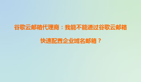 2025-10-04谷歌云郵箱代理商:我能不能通過谷歌云郵箱快速配置企業(yè)域名郵箱? 一、谷歌云郵箱代理商的角色與價值 谷歌云郵箱代理商是經(jīng)過谷歌官方認證的服務(wù)提供商,能夠為企業(yè)用戶提供專業(yè)的技術(shù)支持和定制化解決方...
