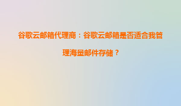 2025-10-04谷歌云郵箱代理商:谷歌云郵箱是否適合我管理海量郵件存儲? 一、海量郵件存儲的挑戰(zhàn) 隨著企業(yè)數(shù)字化進程的加速,郵件作為核心溝通工具,其數(shù)據(jù)量呈指數(shù)級增長...