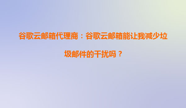 2025-10-03谷歌云郵箱代理商:谷歌云郵箱能讓我減少垃圾郵件的干擾嗎? 在當(dāng)今數(shù)字化時(shí)代,電子郵件已成為個(gè)人和企業(yè)溝通的重要工具。然而,隨之而來(lái)的垃圾郵件問(wèn)題卻讓人不勝其煩。許多用戶都在尋找能夠有效減少垃圾郵件...