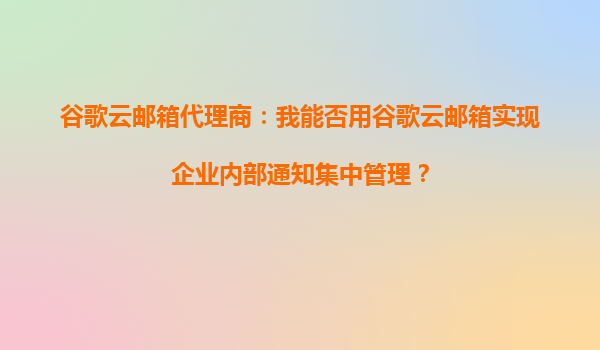 2025-10-03谷歌云郵箱代理商:我能否用谷歌云郵箱實(shí)現(xiàn)企業(yè)內(nèi)部通知集中管理? 一、谷歌云郵箱的核心優(yōu)勢 谷歌云郵箱(GoogleWorkspace,原GSuite)作為企業(yè)級郵件服務(wù),, 具備以下核心優(yōu)勢: 高可靠性:...
