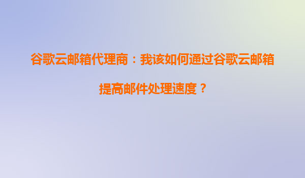 2025-10-01谷歌云郵箱代理商:如何通過谷歌云郵箱提高郵件處理速度 在當今快節(jié)奏的商業(yè)環(huán)境中,高效的郵件處理能力是企業(yè)成功的關鍵因素之一。谷歌云郵箱(GmailforBusiness)作為全球領先的企業(yè)郵箱解決方案,結合谷歌...