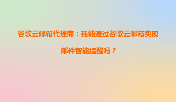 2025-10-02谷歌云郵箱代理商:我能通過谷歌云郵箱實現(xiàn)郵件智能提醒嗎? 一、谷歌云郵箱的智能郵件管理能力 谷歌云郵箱(GoogleWorkspace)作為企業(yè)級郵件解決方案,內置強大的AI功...