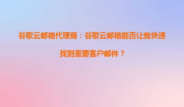 2025-10-02谷歌云郵箱代理商:谷歌云郵箱能否讓我快速找到重要客戶郵件? 一、谷歌云郵箱的核心優(yōu)勢 谷歌云郵箱(GmailforBusiness)作為企業(yè)級郵件解決方案,依托谷歌強大的云計算基礎設施,具備以下核心優(yōu)勢: ...