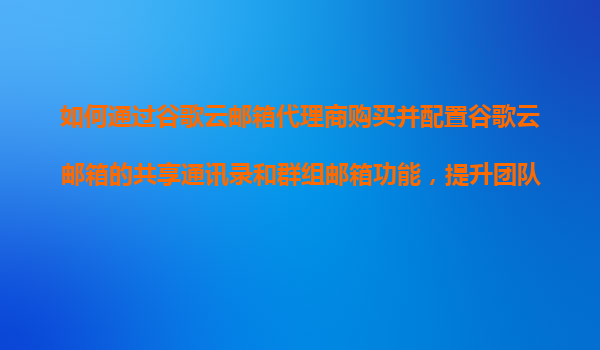 2025-11-08如何通過谷歌云郵箱代理商購(gòu)買并配置谷歌云郵箱的共享通訊錄和群組郵箱功能,提升團(tuán)隊(duì)協(xié)作效率? 一、谷歌云郵箱的優(yōu)勢(shì)概述 谷歌云郵箱(GoogleWorkspace)作為全球領(lǐng)先的企業(yè)級(jí)郵箱服務(wù),提供了...