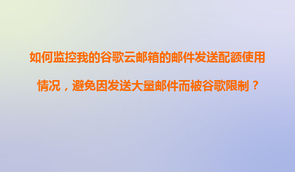 2025-11-08如何監(jiān)控谷歌云郵箱的郵件發(fā)送配額使用情況 在使用谷歌云郵箱(Gmail)進(jìn)行郵件發(fā)送時(shí),了解并監(jiān)控發(fā)送配額至關(guān)重要。谷歌云為企業(yè)和個(gè)人用戶提供了高性能的郵件服務(wù),但為了防止濫用,谷歌會(huì)對(duì)每日郵件發(fā)送量設(shè)置...