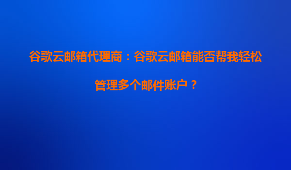 4008-020-360 谷歌云郵箱代理商:谷歌云郵箱能否幫我輕松管理多個(gè)郵件賬戶(hù)? 在當(dāng)今快節(jié)奏的商業(yè)環(huán)境中,高效管理多個(gè)郵件賬戶(hù)已成為企業(yè)和個(gè)人的剛需。谷歌云郵箱(GoogleWorkspace,原GSuite)作為全球領(lǐng)先的企業(yè)級(jí)郵箱...