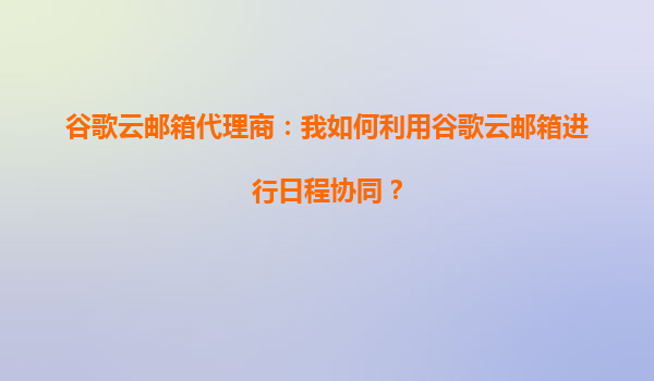 2025-09-24谷歌云郵箱代理商:我如何利用谷歌云郵箱進(jìn)行日程協(xié)同? 一、GoogleWorkspace的協(xié)同優(yōu)勢(shì) 谷歌云郵箱(Gmail)作為GoogleWorkspace的核心組件之一,憑借云端存儲(chǔ)、實(shí)時(shí)同步和多端訪問(wèn)的特性,成...