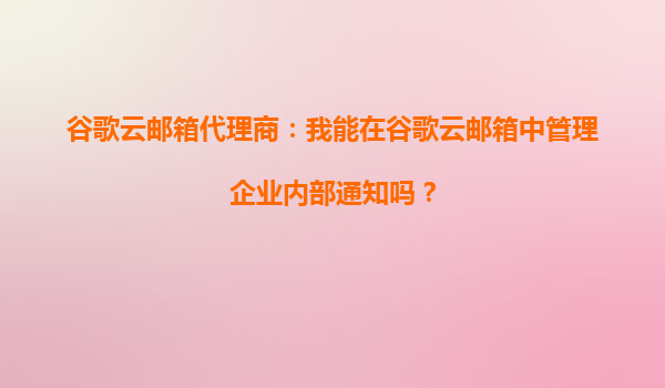 2025-09-19谷歌云郵箱代理商解析:利用谷歌云郵箱高效管理企業(yè)內(nèi)部通知 一、引言:企業(yè)溝通的核心需求與挑戰(zhàn) 在數(shù)字化辦公時代,企業(yè)內(nèi)部通知的高效管理直接影響團(tuán)隊協(xié)作效率和信息傳遞準(zhǔn)確性。傳統(tǒng)郵件系統(tǒng)或即...