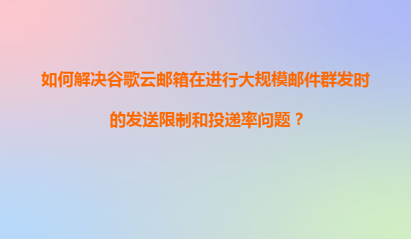 2025-11-07如何利用谷歌云郵箱優(yōu)勢(shì)解決大規(guī)模郵件群發(fā)限制與投遞率問(wèn)題 谷歌云郵箱的高可靠性基礎(chǔ)設(shè)施 谷歌云依托全球分布的數(shù)據(jù)中心網(wǎng)絡(luò),在郵件傳輸過(guò)程中自動(dòng)選擇最優(yōu)路徑,確保投遞穩(wěn)定性。其基礎(chǔ)設(shè)施支持高達(dá)99....