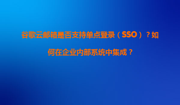 2025-11-07谷歌云郵箱是否支持單點(diǎn)登錄(SSO)?如何在企業(yè)內(nèi)部系統(tǒng)中集成? 一、谷歌云郵箱對(duì)單點(diǎn)登錄(SSO)的支持 谷歌云郵箱(GoogleWorkspace)完全支持單點(diǎn)登錄(SSO)功能,這是企業(yè)級(jí)...