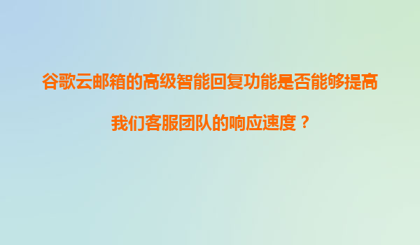 2025-11-07谷歌云郵箱的高級(jí)智能回復(fù)功能是否能夠提高客服團(tuán)隊(duì)的響應(yīng)速度? 引言 在當(dāng)今快節(jié)奏的商業(yè)環(huán)境中,客服團(tuán)隊(duì)的高效響應(yīng)是企業(yè)成功的關(guān)鍵因素之一。隨著人工智能(AI)技術(shù)的快速發(fā)展,許多企業(yè)開始采用智能...