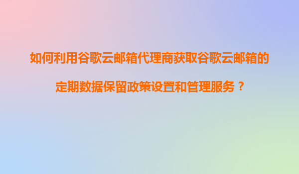 2025-11-07如何利用谷歌云郵箱代理商獲取谷歌云郵箱的定期數(shù)據(jù)保留政策設(shè)置和管理服務(wù) 一、谷歌云郵箱的數(shù)據(jù)保留政策概述 谷歌云郵箱(GoogleWorkspace)提供靈活的數(shù)據(jù)保留政策...