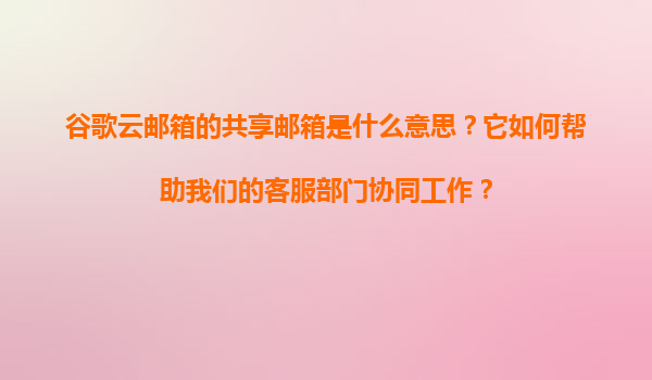 2025-11-07谷歌云郵箱的共享郵箱:提升客服團(tuán)隊(duì)協(xié)同效率的利器 一、什么是谷歌云郵箱的共享郵箱? 谷歌云郵箱(GoogleWorkspace,原GSuite)的共享郵箱(CollaborativeInbox)是一種允...