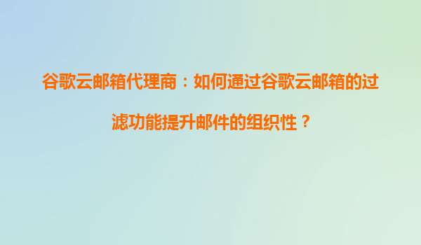 4008-020-360 谷歌云郵箱代理商:如何通過谷歌云郵箱的過濾功能提升郵件的組織性? 一、谷歌云郵箱的優(yōu)勢 谷歌云郵箱(GoogleWorkspace,原GSuite)作為一款高效的企業(yè)級電子郵件服務(wù),憑借其強大的功能和穩(wěn)定的性能,...