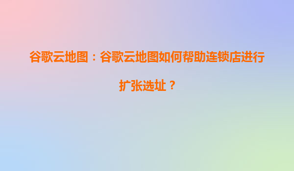 谷歌云地圖:連鎖店擴(kuò)張選址的智能決策引擎