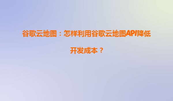 谷歌云地圖:怎樣利用谷歌云地圖API降低開發(fā)成本?