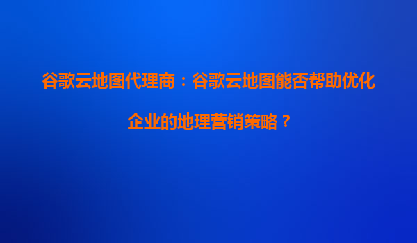 谷歌云地圖代理商:谷歌云地圖能否幫助優化企業的地理營銷策略?