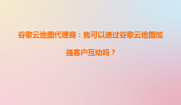 2025-09-23谷歌云地圖代理商:我可以通過谷歌云地圖加強(qiáng)客戶互動(dòng)嗎? 在數(shù)字化時(shí)代,企業(yè)需要通過高效的工具和平臺來加強(qiáng)與客戶的互動(dòng),提升用戶體驗(yàn)。而谷歌云地圖(GoogleMapsPlatform)正是這樣一個(gè)強(qiáng)大的...