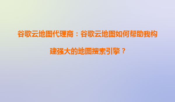 2025-09-16谷歌云地圖代理商:谷歌云地圖如何幫助我構(gòu)建強大的地圖搜索引擎? 一、標(biāo)題解析與核心需求拆解 標(biāo)題包含三個關(guān)鍵信息:"谷歌云地圖代理商"強調(diào)服務(wù)渠道來源;"谷歌云地圖"指明技術(shù)工具;"構(gòu)建地圖搜索引擎"明...