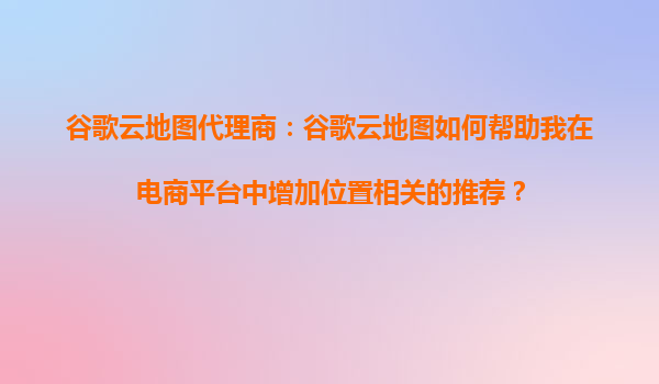 2025-09-16谷歌云地圖代理商:谷歌云地圖如何幫助我在電商平臺中增加位置相關的推薦? 引言 在競爭激烈的電商市場中,個性化推薦是提升用戶體驗和轉(zhuǎn)化率的重要手段之一。位置相關推薦能夠根據(jù)用戶的地理位置提供...
