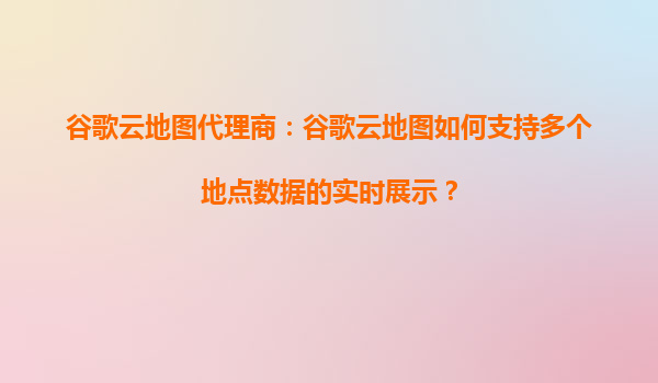 2025-09-06谷歌云地圖代理商:谷歌云地圖如何支持多個(gè)地點(diǎn)數(shù)據(jù)的實(shí)時(shí)展示? 一、實(shí)時(shí)多地點(diǎn)數(shù)據(jù)展示的核心需求 在現(xiàn)代商業(yè)和科技應(yīng)用中,實(shí)時(shí)展示多個(gè)地點(diǎn)數(shù)據(jù)已成為許多行業(yè)的基礎(chǔ)需求。無論是物...