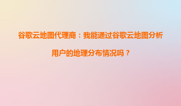 2025-08-29谷歌云地圖代理商:我能通過谷歌云地圖分析用戶的地理分布情況嗎? 在當今數據驅動的商業環境中,了解用戶的地理分布對于企業制定市場策略、優化資源配置至關重要。谷歌云地圖(GoogleMapsPlatform)作為全球...