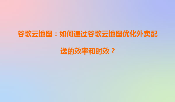 2025-04-12外賣配送行業(yè)的效率挑戰(zhàn)與谷歌云地圖的解決方案 在即時配送需求激增的今天,外賣平臺面臨訂單分配效率低、路線規(guī)劃不合理、交通擁堵應(yīng)對滯后等痛點。谷歌云地圖(GoogleMapsPlatform)憑借其強(qiáng)大的地理空間數(shù)...