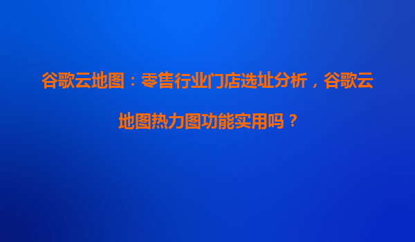 2025-04-03谷歌云地圖熱力功能在零售行業(yè)門店選址分析中的實用價值 一、零售行業(yè)選址的核心痛點 傳統(tǒng)選址模式存在三大局限性: 1.人工調(diào)研成本高(單城市選址評估周期長達(dá)2-3個月) 2.數(shù)據(jù)維度單一...