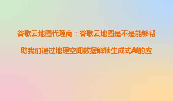 2025-10-26谷歌云地圖代理商:解鎖生成式AI的地理空間數(shù)據(jù)應(yīng)用場景 在數(shù)字化轉(zhuǎn)型的浪潮中,地理空間數(shù)據(jù)與生成式人工智能(AI)的結(jié)合正開辟全新的商業(yè)和技術(shù)可能性。作為谷歌云地圖的代理商,我們深刻理解谷歌云平臺在這...