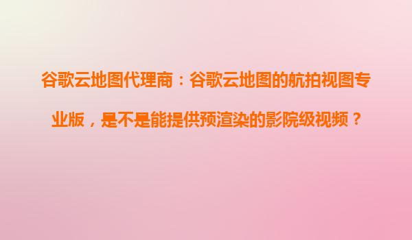 2025-10-23谷歌云地圖代理商:航拍視圖專業(yè)版能否提供預(yù)渲染的影院級視頻? 在數(shù)字地圖和地理空間數(shù)據(jù)領(lǐng)域,谷歌云地圖(GoogleMapsPlatform)一直是行業(yè)領(lǐng)導(dǎo)者之一。其航拍視圖專業(yè)版(AerialViewAPI)作為一項高級...