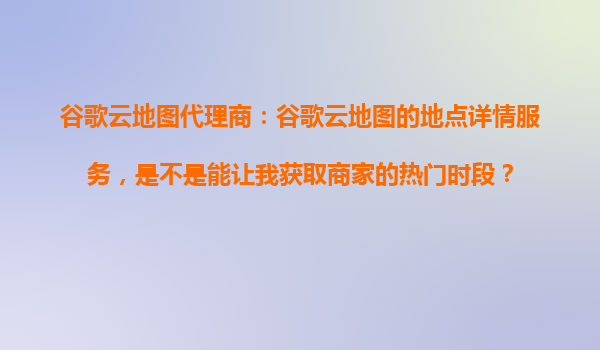 2025-10-23谷歌云地圖代理商解析:地點詳情服務(wù)如何幫助獲取商家熱門時段? 一、谷歌云地圖地點詳情服務(wù)簡介 谷歌云地圖(GoogleMapsPlatform)作為全球領(lǐng)先的地理位置服務(wù)提供商,其地點詳情服務(wù)(PlacesAPI)為...
