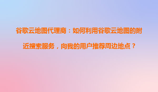 2025-10-23谷歌云地圖代理商:如何利用谷歌云地圖的附近搜索服務(wù),向我的用戶推薦周邊地點? 一、谷歌云地圖服務(wù)的核心優(yōu)勢 作為谷歌云地圖代理商,首先需要理解其技術(shù)優(yōu)勢: 全球地理數(shù)據(jù)覆蓋-基于谷歌地圖20億...