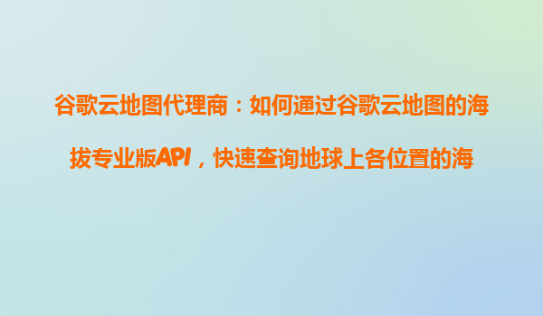 4008-020-360 如何通過谷歌云地圖的海拔專業(yè)版API快速查詢地球上各位置的海拔數(shù)據(jù) 引言 在當(dāng)今數(shù)字化時代,地理信息系統(tǒng)(GIS)和位置服務(wù)已成為許多行業(yè)不可或缺的一部分。無論是城市規(guī)劃、物流運輸、戶外探險...