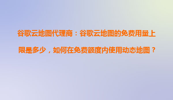 2025-10-23谷歌云地圖代理商:免費(fèi)額度與動(dòng)態(tài)地圖使用指南 一、谷歌云地圖的免費(fèi)用量上限 谷歌云地圖(GoogleMapsPlatform)為開發(fā)者提供了每月一定額度的免費(fèi)使用量,...