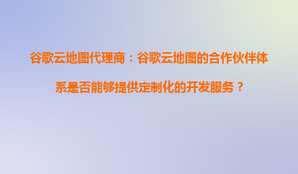 2025-10-22谷歌云地圖代理商:谷歌云地圖的合作伙伴體系是否能夠提供定制化的開發(fā)服務(wù)? 一、谷歌云地圖合作伙伴體系概述 谷歌云地圖(GoogleMapsPlatform)是谷歌云(GoogleCloud)旗下的核心服務(wù)之一,提供包括...