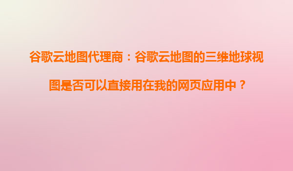 2025-10-19谷歌云地圖代理商:谷歌云地圖的三維地球視圖是否可以直接用在我的網(wǎng)頁應用中? 谷歌云地圖及其三維地球視圖簡介 谷歌云地圖(GoogleMapsPlatform)是谷歌提供的強大地圖服務,支持全球范圍內(nèi)的地理數(shù)據(jù)...