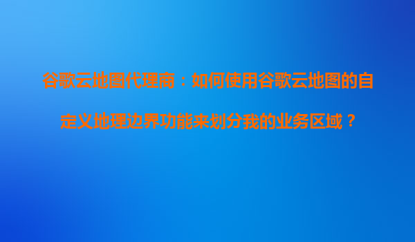 2025-10-19谷歌云地圖代理商:如何使用谷歌云地圖的自定義地理邊界功能來劃分業(yè)務區(qū)域 引言 在當今數(shù)據(jù)驅(qū)動的商業(yè)環(huán)境中,精準劃分業(yè)務區(qū)域是優(yōu)化運營效率、提升客戶體驗的關鍵步驟。谷歌云地圖(Go...