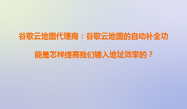 2025-10-18谷歌云地圖代理商:谷歌云地圖的自動補全功能是怎樣提高我們輸入地址效率的? 一、谷歌云地圖自動補全功能簡介 谷歌云地圖(GoogleMapsPlatform)的自動補全...
