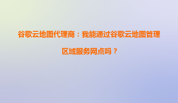 2025-10-16谷歌云地圖代理商:如何高效管理區(qū)域服務(wù)網(wǎng)點(diǎn)? 一、標(biāo)題解析:核心需求與谷歌云地圖優(yōu)勢(shì)的結(jié)合 原標(biāo)題"谷歌云地圖代理商:我能通過谷歌云地圖管理區(qū)域服務(wù)網(wǎng)點(diǎn)嗎?"包含三個(gè)關(guān)鍵信息: 角色定位:谷歌...