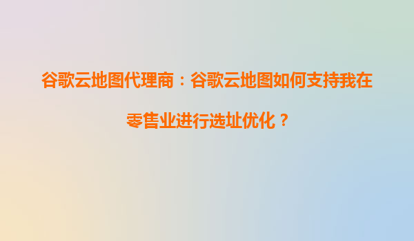 2025-10-04谷歌云地圖代理商:谷歌云地圖如何支持我在零售業(yè)進(jìn)行選址優(yōu)化? 引言 在零售業(yè)中,選址是決定業(yè)務(wù)成敗的關(guān)鍵因素之一。一個理想的位置可以帶來更多的客流、更高的銷售額和更強的品牌影...
