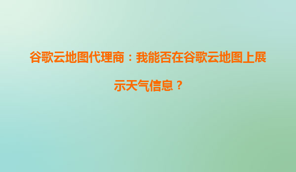 2025-09-26谷歌云地圖代理商:我能否在谷歌云地圖上展示天氣信息? 一、谷歌云地圖的天氣信息集成能力 作為谷歌云地圖代理商,許多客戶常問:“能否在谷歌云地圖上直接展示天氣信息?”答案是肯定...